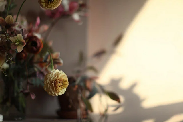 We have a forever love-affair with the ranunculus: a curious stem that warps towards the light (the basis of any good inspirational quote, no?), the endless petals revealed in bloom and those freckles of rich streaked color within. It is an infuriatingly perfect flower, in a way that parallels the allure of Audrey Hepburn and by that same token: it is a classic. Sauntering to peak selection during the last stretch of winter-- the offering becomes feverish with a bounty of Dutch, French, Japanese and locally grown specimens. Please join us as we jumpstart spring and celebrate the Ranunculus-- along with the menagerie of spectacular late winter flowers like forced quince branches, poppies, hellebores and more.